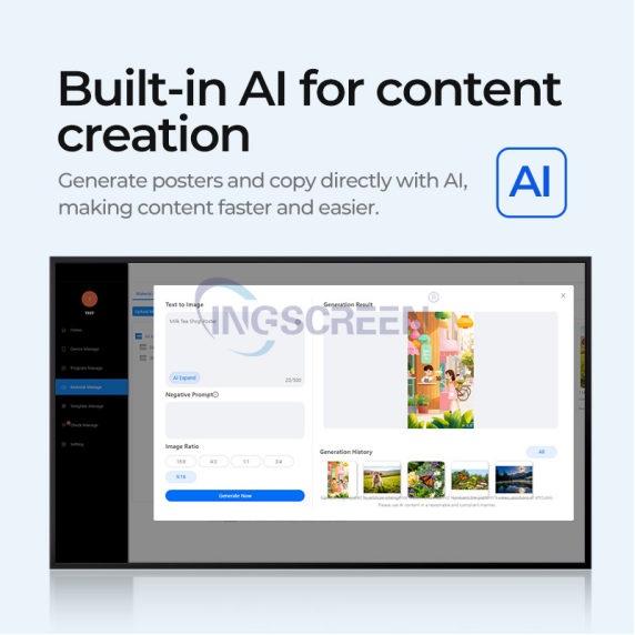 INGSCREEN Technology Limited — это высокотехнологичное предприятие с более чем 10-летним опытом работы, специализирующееся на исследованиях, разработке, производстве и продаже мультимедийного учебного оборудования и высококлассного дисплейного оборудования. Компания располагает собственной ключевой исследовательской и опытно-конструкторской командой, а также совершенной производственной и сервисной службой поддержки продаж; её сервисная сеть охватывает провинции и города по всей стране. Основные продукты: интерактивная панель, интерактивная доска, ЖК-дисплей Цифровые вывески , встраиваемый OPS-ПК, интерактивная школьная доска, самообслуживаемый киоск, ЖК-видеостена и др. Товары широко используются в сфере обучения, подготовки и бизнеса.